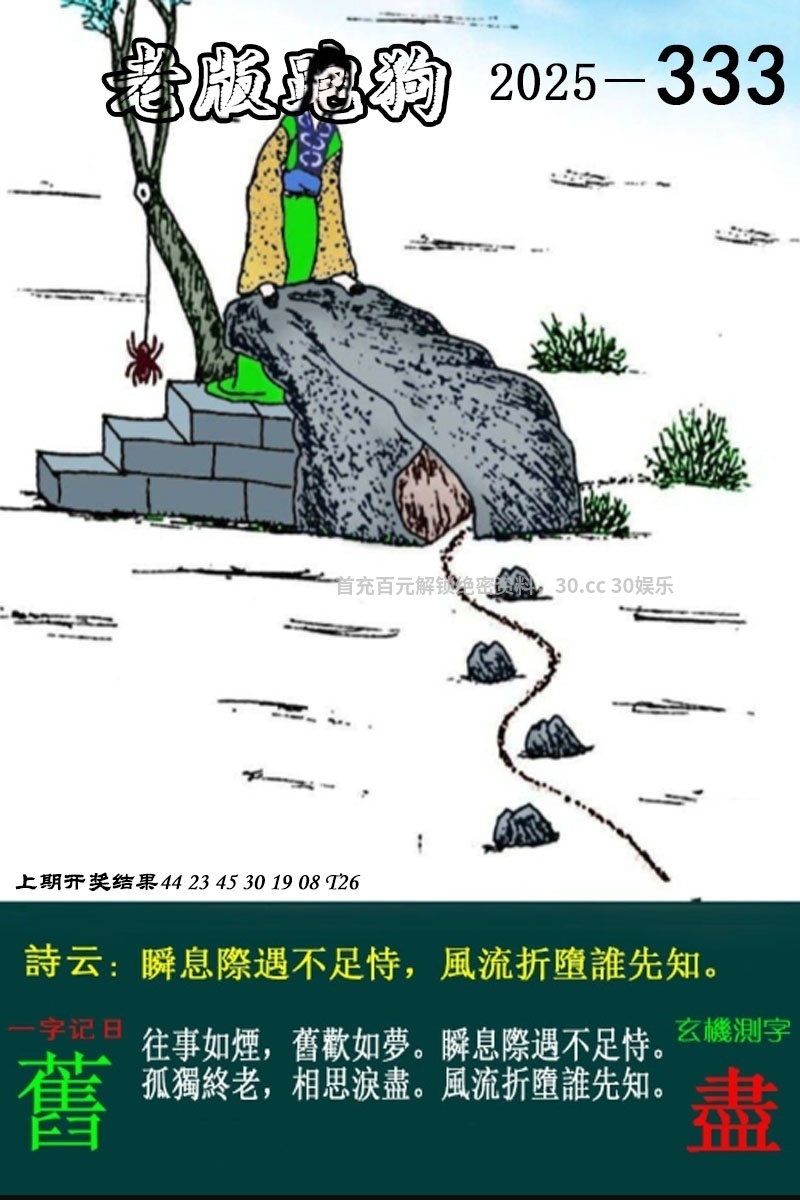 | 333期【老板跑狗特码诗】开:鼠06 詩雲:瞬息際遇不足恃,風流折墮誰先知。往事如煙,舊歡如夢。瞬息際遇不足恃。孤獨終老,相思淚盡。風流折墮誰先知。 诗句解:孤獨終老解牛羊兔鼠虎马。 综合取肖:牛羊兔鼠虎马龙 |